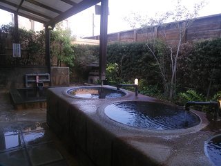 久しぶりに大浴場に入りました。中に大きな浴槽が一つあり、露天は写真のように釜風呂が3つと浴槽が1つあります。大浴場にしてはバリエーションが少ない感じがしますが、その気持ちを越えるお湯の質があるので、とても満足度が高い温泉です。