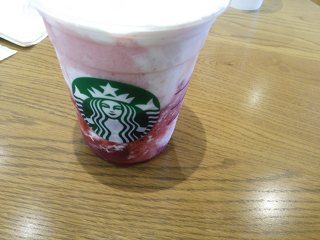 食べたかったイチゴのフラペチーノがまだあったので頼みました。無料でホイップも中と外を両方増量出来たのでお願いしました。甘酸っぱくて美味しいですね。個人的にホイップと一緒に食べるとなお美味しい感じがしました。お店は30人ぐらい行列が出来ていて驚きました!
