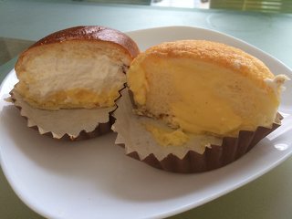 リピートです☆ 土曜日のお昼時だったのでレジに長打の列でしたw お店の人気No.1の塩パンがラスト一個だったけどゲットできたのでラッキーでした。今回は友達が美味しいと言っていたクリームアンパンを買いに。写真には撮っていませんが、生クリームとあんこがたっぷりでした。あんこと生クリームのバランスが絶妙で、デザート感覚のパンでしたよ。こちらのクリーム系は、お菓子屋さんが経営しているだけにとっても繊細で美味しいです。写真は冷やしクリームパンです。また買いに行きます☆☆☆
