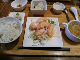 某雑誌のランチパスポートを利用して、ぷりぷりイカのオーロラソースランチ(900円→500円)を注文。イカがぷりぷりしていてオーロラソースと相性抜群で、ご飯が進む味。小鉢の水餃子も皮が肉厚でモチモチしていて、食べごたえありました!