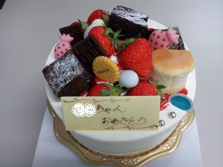 お祝いケーキを買いました!生クリームのデコレーションを買ったのですがとっても美味しいのにみんなビックリ!!デコレーションに果物だけでなくプチケーキが乗ってたりして子供がテンションアゲアゲ(笑)生クリームの甘さを控えてあってすいすい口に入ってしまうケーキでした。後味もどっかりきませんでした。次回はチョコレートバージョンのデコレーションを買ってみたいです♪