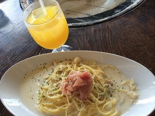 湯の児温泉の帰りのお昼ご飯で利用しました~☆ ここは景色が絶景ですね! とっても見晴がいいです。食事は生ハムのきのこクリームパスタを家族はパエリアとピザを食べました。すべて美味しかったです。甘夏のジュース、ぶどうジューズはとっても贅沢なジュースの味わいでした。また水俣に来た時は寄らせて頂きます! おごちそう様でした~♪